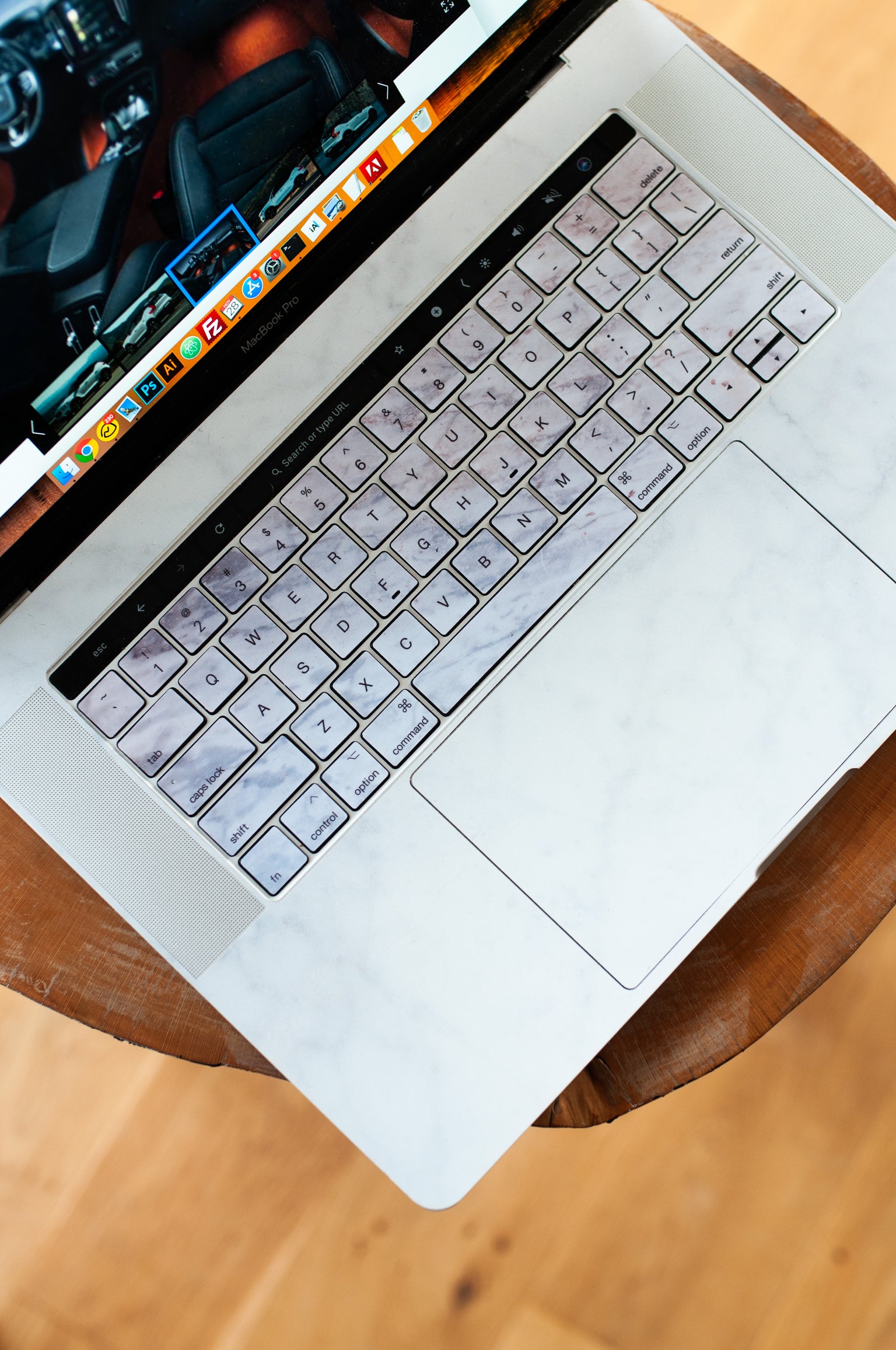 Trendy MacBook keyboard decals set with carrara marble. Made for your MacBook or Apple keyboard to protect and beautify it. In the photo we also added a White Marble MacBook Skin which is of course recommended for a total marble-look with an Italian vibe